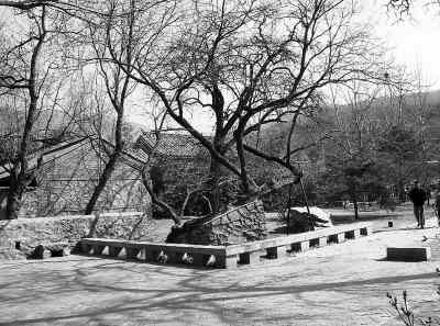 過(guò)去在香山一帶流傳的曹公故居小曲是這樣唱的:“門(mén)前古槐歪脖樹(shù),小橋流水野芹麻!倍F(xiàn)在的紀(jì)念館門(mén)前就屹立著3棵古槐,應(yīng)為元槐,距今已有七百多年了;其中門(mén)東邊的一棵是著名的“歪脖槐”。紅學(xué)家吳恩裕先生曾著文:“他(曹公)住的地方在四王府的西邊,地藏口的左邊靠近河的地方,那兒今天還有一棵已二百年的大槐樹(shù)!睉(yīng)該說(shuō)這位紅學(xué)家是調(diào)查得比較仔細(xì)的,可能因他不是研究植物學(xué)的,故樹(shù)齡把握得不太準(zhǔn)。據(jù)當(dāng)?shù)氐睦先藗冋f(shuō),過(guò)去在曹公門(mén)前生長(zhǎng)著很多野芹菜,曹公經(jīng)常用它給百姓治病,并自己起名為“芹”。紀(jì)念館門(mén)前的景物和小曲正相吻合。
