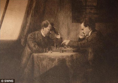 據(jù)《每日郵報(bào)》4月14日報(bào)道,一張?jiān)?909年創(chuàng)作的希特勒與列寧下棋的素描畫15日將在英國一家拍賣行進(jìn)行拍賣,專家預(yù)計(jì)拍賣價(jià)為4萬英鎊。這個(gè)寬50.8厘米,高38.1厘米的素描畫,據(jù)考證也是唯一一幅同時(shí)有希特勒和列寧親筆簽名的畫作。