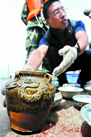 據(jù)介紹,自5月1日“南澳Ⅰ號”考古發(fā)掘現(xiàn)場首次向媒體公布新出水文物后,隨后近一周時間已陸續(xù)有文物出水。目前,對古船表面文物的發(fā)掘基本告一段落,船體表面清淤工作進入尾聲。下一步,水下考古隊員將從目前已現(xiàn)真身的“南澳Ⅰ號”右側(cè)船舷往里發(fā)掘,“南澳Ⅰ號”水下考古集中進入船艙內(nèi)部發(fā)掘階段。