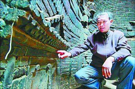 該座宋墓位于南水北調(diào)焦作段普濟(jì)路一處工地上。記者昨日到達(dá)現(xiàn)場時(shí),南水北調(diào)焦作段施工人員正在幫助文物工作人員保護(hù)發(fā)掘現(xiàn)場。據(jù)焦作市文物工作隊(duì)古建專家趙德才介紹,圓形宋墓在焦作市所發(fā)掘的宋墓中比較罕見,這座宋墓上所雕刻的建筑結(jié)構(gòu)清晰可見,對(duì)研究宋代建筑有一定價(jià)值。