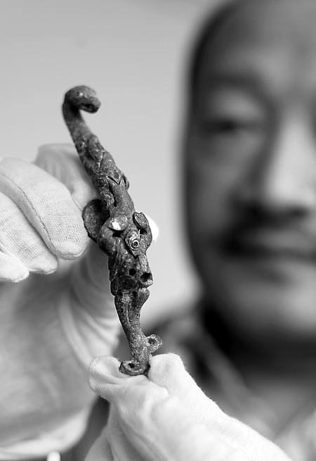 據(jù)中國社科院考古研究所副研究員王明輝對墓中人骨的鑒定,初步判斷墓中有男女兩個(gè)個(gè)體,男性個(gè)體在50歲至60歲之間,生前身高約171厘米,體格粗壯,女性個(gè)體40歲左右,該墓為合葬墓。