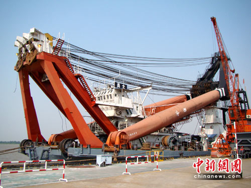 中新網(wǎng)鎮(zhèn)江5月24日電(盛如平 董文浩 朱曉穎)24日,江蘇鎮(zhèn)江焦山“瘞鶴銘”殘石打撈在即,“勇士”號浮吊船抵達并停泊在索普碼頭,等候進入打撈作業(yè)水域。