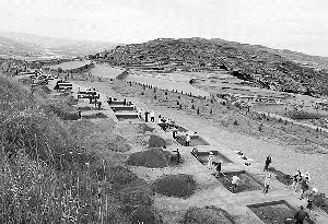 禮縣大堡子山遺址位于禮縣縣城以東13公里處的西漢水北岸,是我省早期秦文化考古與研究的重要組成部分。該墓地的發(fā)掘以及帶有“秦公”銘文青銅器的認(rèn)定,破解了秦公陵園的千古之謎?脊艑<艺J(rèn)為,大堡子山古墓的墓葬形制和地理特征說明,甘肅禮縣一帶就是秦始皇的“老家”。
