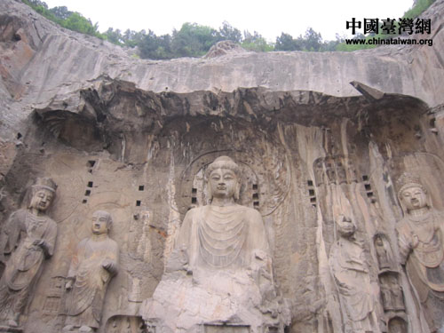 龍門石窟至今仍存有窟龕2100多個(gè),造像10萬余尊,碑刻題記3600余品,抬頭舉目,滿眼盡是儀態(tài)萬千、美不勝收的藝術(shù)瑰寶。媒體記者應(yīng)接不暇,紛紛拍照留念。龍門石窟最有名的雕像當(dāng)屬第1280窟(奉先寺)的盧舍那大佛。盧舍那大佛通高約17米,頭部高4米,寶相莊嚴(yán),氣度閑適。當(dāng)記者凝視大佛的雙眼時(shí),卻發(fā)現(xiàn)大佛也在俯視著你,莊嚴(yán)而不失親切,不語卻發(fā)人深省。龍門石窟越看越覺得看不夠,越看越覺得不可思議,這些佛像,迥異于我們尋常所見,形象生動(dòng),帶著一種異域的風(fēng)情,向我們展示了當(dāng)年?duì)N爛的文化、高超的審美、精湛的技藝。