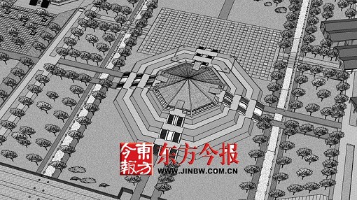 郭黛姮說:明堂建筑為一層建筑,根據(jù)遺址現(xiàn)場的考古報告顯示,明堂是中心柱和八邊形建筑。此次設(shè)計中,明堂將仍采用八角攢尖屋頂。