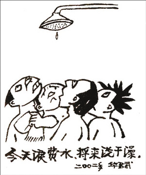 華君武的漫畫,早年長(zhǎng)于政治時(shí)事漫畫,后期以諷刺畫為主,辛辣諷刺社會(huì)上種種丑陋、落后現(xiàn)象。構(gòu)思巧妙,入木三分,富有幽默感。