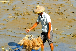 同時,由于泥魚只能生活在沒有污染的自然灘涂中,在工業(yè)發(fā)展日益迅速的今天,自然灘涂又越來越少,這一原本在當(dāng)?shù)赝疟M知的傳統(tǒng)習(xí)俗越來越無“用武之地”,“裝泥魚”的場景難得一見。
