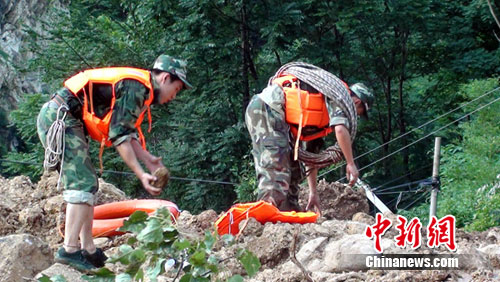 據(jù)介紹,接到搜救命令后,19名官兵迅速挺進(jìn)救援現(xiàn)場,由于受暴雨侵襲,到大竹河鎮(zhèn)臨河村大部分道路交通中斷,通行非常困難,在前往臨河村的途中,險情錯綜復(fù)雜,并不時還有山石墜落,由于對當(dāng)?shù)氐匦蔚孛膊皇煜ぃw搜救隊員每前進(jìn)一步都帶著威脅,此路段全程12.8公里,再加上沒有交通工具此行顯得更加艱難,爬山,翻越,走水路渡船,雖然,大家的腳上都磨出泡。在歷時4小時后,全體隊員翻過一個又一個滑坡地段,穿越了一個又一個亂石集結(jié)的險灘激流,終于按照上級規(guī)定的時間準(zhǔn)時到達(dá)目的地。