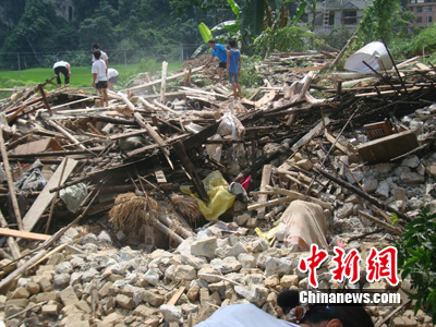 中新網(wǎng)河池8月4日電 (羅開革 王剛)廣西河池市鳳山縣公安局4日上午透露,該縣3日發(fā)生大面積山體滑坡事故,上萬立方的泥土和石頭摧毀了5間民房。所幸房內人員及時逃生,沒有造成人員傷亡。