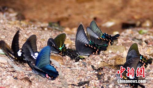 中新網(wǎng)韶關(guān)8月5日電(李凌 劉加青 劉倩)仿佛是為了慶祝申遺成功,近日,廣東丹霞山景區(qū)生態(tài)旅游路段,出現(xiàn)了千百只蝴蝶谷底翩飛的絢麗奇觀。