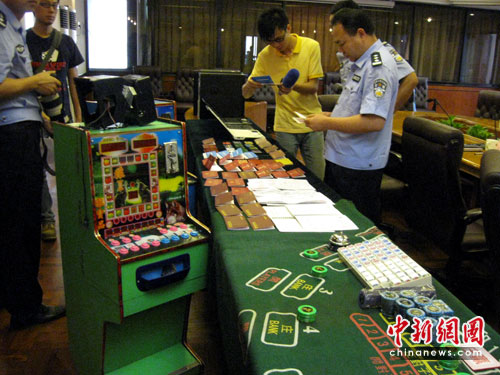 6月2日,佛山禪城警方再次搗毀一賭博窩點(diǎn),抓獲涉賭人員60多名,繳獲賭資30多萬(wàn)元,大砍刀10把及賭博工具一批。據(jù)了解,賭場(chǎng)設(shè)在一家制衣廠內(nèi),白天工人上班,晚上開(kāi)設(shè)賭場(chǎng)。