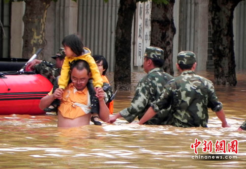 目前,有關(guān)部門正在營救災民,抗洪救災工作正在進行。(完)