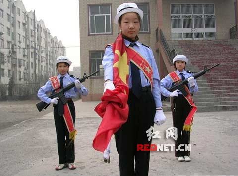 記者通過搜索發(fā)現(xiàn),該圖片早在2006年就有在網(wǎng)上流傳,今年1月22日江西衛(wèi)視《雜志天下》再次披露后,爭議一直延續(xù)到如今,爭論焦點仍為“是否為護旗”?夸張離譜到了極點,圖片的真假性難以考證,疑似惡搞作品;如果是護旗,小學(xué)生為何要帶槍?學(xué)校如此做法欠妥,顯得荒唐、離譜,其教育理念顯得很暴力,不可取。也有人分析,無論真假卻反應(yīng)了目前小學(xué)愛國教育需要創(chuàng)新,而創(chuàng)新并不意味著不倫不類。 (來源:紅網(wǎng) 記者 耿紅仁)
