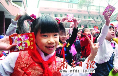 本報訊(記者/謝苗楓實習生/王芝露張晏)紅紅的中國結(jié)、大大的燈籠……昨天,廣州市140多萬中小學生正式返校上課,雖然春節(jié)已過,但孩子們還沉浸在節(jié)日的喜慶中。更開心的是,廣州還將在今年探索以補助方式逐步讓來穗務工就業(yè)農(nóng)民子女接受免費義務教育。