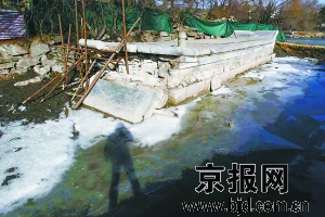 昨天,市文物局有關負責人趕赴北大現(xiàn)場了解情況,經(jīng)過勘測,認定未名湖石舫舫首局部石構(gòu)件塌落的主要原因是石舫本身的陳舊性斷裂在融凍作用下造成的。據(jù)介紹,事件發(fā)生前,北京大學已將石舫的修繕列入計劃,沒想到春節(jié)期間氣溫回升很快,在未名湖冰凍消融的過程中意外發(fā)生了這一事件。
