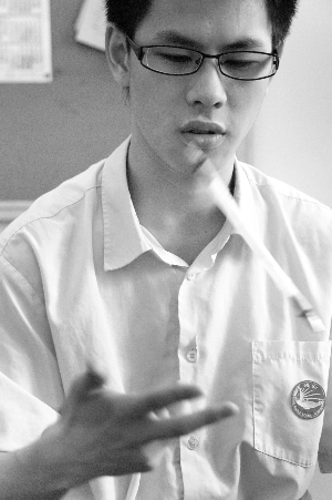 練習(xí)了半年,杰仔的技能已經(jīng)熟練,其中最拿手的“絕招”就是“飛筆”:兩只手一齊出動(dòng),兩支筆驀地騰起,劃了個(gè)360度的漂亮弧圈,掉下來(lái)時(shí)剛好被兩指夾住。杰仔常在教室里表演,引得同學(xué)們紛紛模仿,2007年下半年,他成立了筆舞社,吸引了20多名社員同樂。