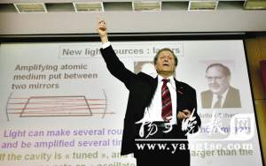 昨天,“霍尼韋爾·諾貝爾全球校園行”活動為東南大學請來了重量級嘉賓——諾貝爾物理獎獲得者,76歲的克勞德·科恩·坦諾奇(Claude Cohen-Tannoudji)教授。他以“光與物質(zhì)”為主題,與東大學子分享了他的個人經(jīng)歷和學術成就。在與媒體見面時,科恩教授還主動“報料”稱,他與祖籍江蘇太倉的華裔科學家、美國能源部部長朱棣文是好友。