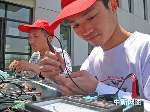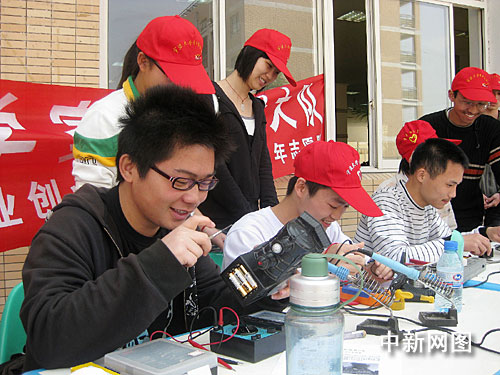 4月26日,浙江紡織服裝職業(yè)技術學院大學生就業(yè)創(chuàng)業(yè)協(xié)會組建青年志愿隊,和寧波大學理學院家電維修社聯合開展維修小家電活動。他們在校園內設攤,用一天時間免費為同學們修理電風扇、電吹風、MP3等各種小家電200余件。
