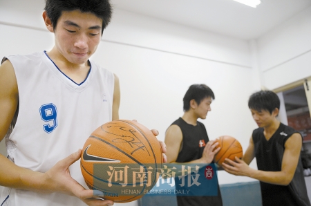 喝過茶,四個(gè)大男孩算是正式投入科比門下。隨后,他們送上事先準(zhǔn)備好的拜師禮:信陽毛尖和一對(duì)中國結(jié),中國結(jié)上印有科比全家福照片。洋師傅大喜過望,回贈(zèng)了幾位“大弟子”簽名籃球和文化衫。如今這些已成了鄭大籃球隊(duì)的寶貝。