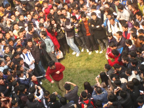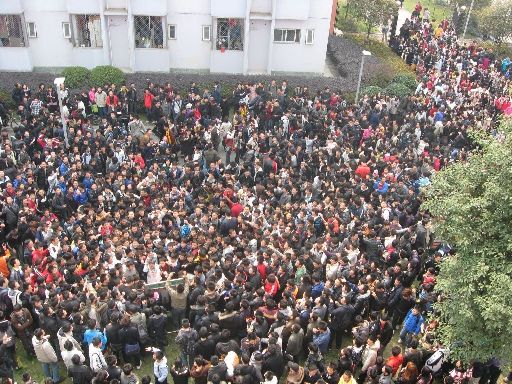 到今日中午,更有上千名“慕名”前來的校內(nèi)外學(xué)生在女生所指定的樓下“圍觀”,等待著膽大的男生前來呼叫女主角,附近學(xué)校甚至有學(xué)生“組團”前往,并不斷有網(wǎng)友上網(wǎng)發(fā)帖報告事件進(jìn)展。據(jù)網(wǎng)帖稱,稍后有一穿紅衣男子前來表白,將現(xiàn)場引向高潮。