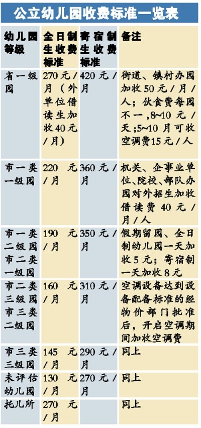據(jù)介紹,公立幼兒園是屬于全市收費最規(guī)范的層次,因為按物價局規(guī)定,省一級、市一類園、市二類園、市三類園和未評估的幼兒園、托兒所,都有明確的收費標準。公立園的每項收費、標準及收費許可證都須公示在公布欄。不過,這一層次也是目前全市幼兒園中最少的。