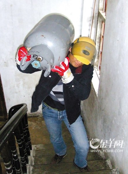 轉(zhuǎn)正沒希望 扛起煤氣罐
