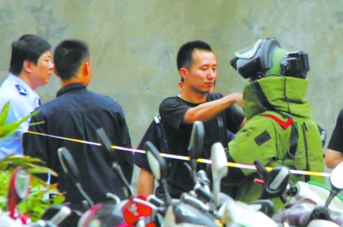 “炸彈!”保安驚慌一叫,何老伯拔腿就跑,保安扔下紙袋同時(shí)報(bào)警。