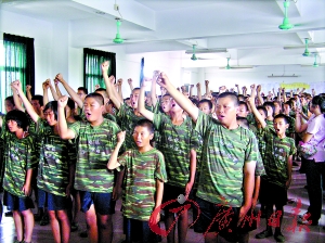 前日16時(shí),14歲的小何(化名)經(jīng)過(guò)一天的折騰終于回到家中。小何交了一萬(wàn)多元進(jìn)了起航拯救訓(xùn)練營(yíng),是廣州勵(lì)志主辦的。但后來(lái)名稱(chēng)不知為什么改成了浩今,但地點(diǎn)都是在南沙黃閣的浩今職中!耙贿M(jìn)去就被關(guān)了三天兩夜的禁閉,連擦汗都要喊報(bào)告,如果不聽(tīng)話(huà)就會(huì)用掃把抽打,都打斷好幾根了。三天之后出去就是體能訓(xùn)練,都不知道要跑多少個(gè)圈!