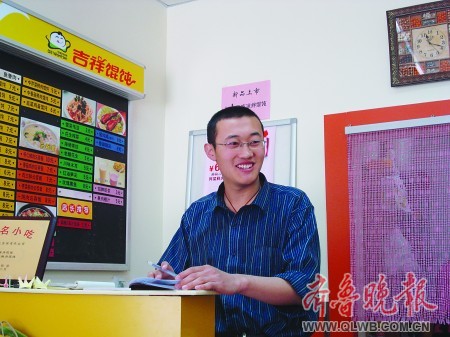 經(jīng)過考察,王欣欣得知吉祥餛飩店是一家加盟連鎖店,操作流程簡單,適合他創(chuàng)業(yè)初期的選擇。家是臨沂的他選擇了把店開在濟南!半x家近,而且這邊有個親戚!