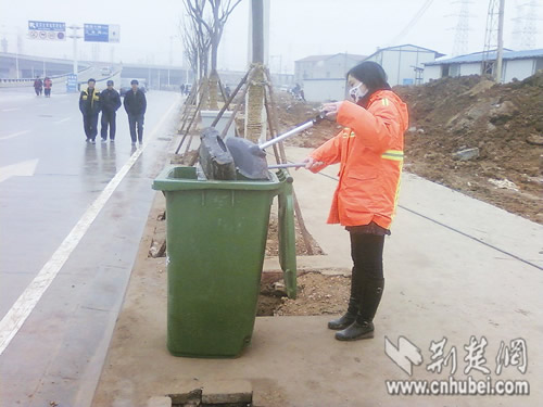 荊楚網(wǎng)消息 (楚天都市報(bào)) (記者聶麗娟 通訊員易先云 張凱揚(yáng))新年元旦放假的第二天,也是付莎莎到武漢火車站當(dāng)清潔工的第九天。清晨6點(diǎn)整,她穿著嶄新的橘紅色環(huán)衛(wèi)工作服,左手拎著鐵撮箕,右手拿著一尺多長的鐵夾子,彎腰拾撿路面上的礦泉水瓶子、塑料袋、餐巾紙、煙頭等廢棄物。