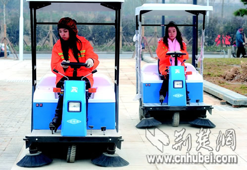 三名女大學(xué)生到崗后,一直工作在環(huán)衛(wèi)第一線。年齡稍大的付莎莎目前已當(dāng)上了班長,帶著早、晚班兩個小隊(duì)24人。記者采訪時(shí),付莎莎在布置完晚班的任務(wù)后,就拿著鐵夾子、鐵撮箕和同事一起風(fēng)風(fēng)火火地干起活來。年齡稍小的羅瑛、付琴菲,前幾天被抽調(diào)出來,主要負(fù)責(zé)駕駛新添置的電動清潔車。