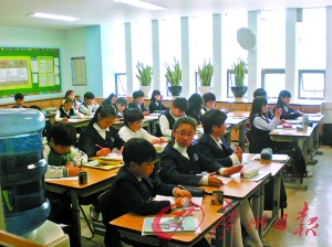記者參觀了成立于1961年的韓國(guó)慶熙小學(xué),這個(gè)學(xué)校目前共有學(xué)生720人,六個(gè)年級(jí),每個(gè)年級(jí)有4個(gè)班。據(jù)該學(xué)校的副校長(zhǎng)介紹,該學(xué)校最大的特點(diǎn)是外語(yǔ)教學(xué),記者參觀的當(dāng)日,正遇到小學(xué)三年級(jí)的學(xué)生英語(yǔ)測(cè)試,采用的是老師與學(xué)生對(duì)話的形式。靈活實(shí)用的方法是值得我們國(guó)內(nèi)的學(xué)校學(xué)習(xí)和借鑒的。