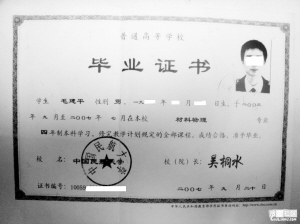 “一般情況下,學校頒發(fā)畢業(yè)證的時間是7月和9月。根據(jù)我們的了解,毛建平的畢業(yè)證應該是在9月補發(fā)的!敝煜驏|說,之前,毛建平也與學校進行過多次接觸,并懷疑自己拿到的這份假學歷證書出自校方。但是,學校并沒有理由給一位學習四年并順利畢業(yè)取得畢業(yè)證、學位證的學生發(fā)一份偽造的證書。按朱向東所說,毛建平是2007年從學校順利畢業(yè)的,學校就會按照程序頒發(fā)給他畢業(yè)證書和學位證書,這是很正常的事。即使學校學工部在發(fā)證這一過程中出現(xiàn)丟失或者其他情況,再對他進行補辦也是很容易的事,根本沒有理由從學校發(fā)給他一份假學歷證書。