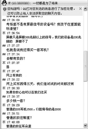 對方解釋說,高先生要拿到答案,首先必須買一套“2009微型口腔骨傳導(dǎo)耳機(jī)”。這套設(shè)備是將微型耳機(jī)放在考生嘴里帶進(jìn)考場,出售答案者將答案通過電話或 QQ 發(fā)送給家長,然后由家長手持發(fā)射器在考場外給考生傳送答案。如果高先生有意購買口腔骨傳導(dǎo)耳機(jī),他們可以幫助高先生買,2000元一套。