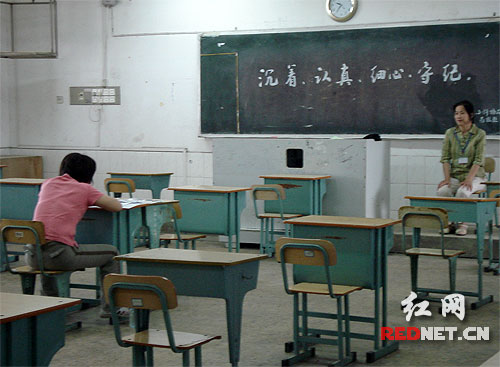 湘潭一中考點(diǎn)負(fù)責(zé)人介紹,劉華珍坐在了備用考室最中央的一個位置上,兩名監(jiān)考老師中有一名校醫(yī),另外醫(yī)院救護(hù)車也守候在考場外,幾名醫(yī)生也在緊張待命當(dāng)中,應(yīng)對可能的意外情況。
