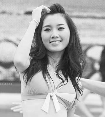 鐘茜劍藍(lán),很特別的名字,在眾多“比基尼”小姐中,讓人一下子記住了她。還因?yàn),此時(shí)的她正就讀于廣州體育學(xué)院體育新聞與傳播系大三年級(jí)。