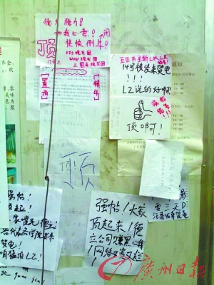 上海第二工業(yè)大學河東校區(qū)的一些學生,因不滿校園網(wǎng)速極慢,連上QQ都困難,紛紛在寢室門口張貼出一份份類似網(wǎng)上灌水的“跟帖”,集體聲討學校網(wǎng)絡(luò)公司(如圖)。有同學把這種頂帖的盛況拍下來放到網(wǎng)上,引來不少網(wǎng)友的關(guān)注,有網(wǎng)友稱平時大家在網(wǎng)上發(fā)牢騷,學校根本不知道,但通過這種現(xiàn)實跟帖的方式,學校就不得不關(guān)注。上海第二工業(yè)大學相關(guān)負責人回應稱,目前事情已經(jīng)解決。