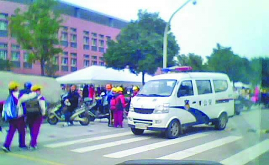 網(wǎng)友發(fā)布的學(xué)校門(mén)前警車(chē)的照片。
