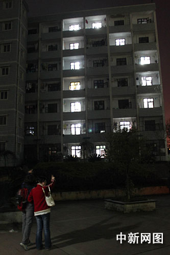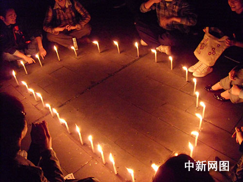 8時(shí)30分,隨著10秒倒計(jì)時(shí)的結(jié)束,西南大學(xué)各寢室的燈光依次熄滅,14個(gè)寢室亮起的燈光拼成了字母“D”字樣,校園內(nèi)頓時(shí)一片歡呼。在英語角,同學(xué)們還用蠟燭擺出了字母“D”,大家圍坐在蠟燭邊上,共同祈禱“地球平安,生態(tài)和諧”。