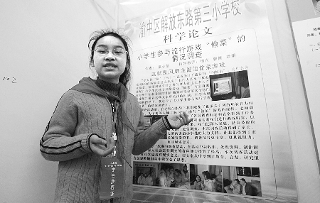 華龍網(wǎng)訊(記者 紀(jì)文伶)“請(qǐng)問(wèn)你經(jīng)常偷菜嗎?”10歲的梁心怡走遍了學(xué)校、網(wǎng)吧、社區(qū),將這個(gè)問(wèn)題重復(fù)了數(shù)百遍。她可不是閑著沒(méi)事干。渝中區(qū)解放東路第三小學(xué)五年級(jí)的這個(gè)小姑娘花費(fèi)半年多時(shí)間發(fā)出300份問(wèn)卷調(diào)查,本月寫(xiě)下近6000字論文——《小學(xué)生參與流行游戲“偷菜”的情況調(diào)查》,在我市25屆青少年科技創(chuàng)新大賽中獲創(chuàng)新大獎(jiǎng)。