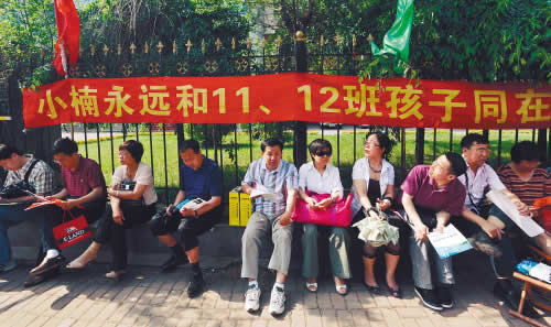 在43中學(xué)考點前,一條紅色標語讓人關(guān)注!靶¢肋h和11、12班的孩子同在!”。這位小楠是誰?一位家長告訴記者,小楠是考生的班主任,他們是120中學(xué)的。小楠老師班里同學(xué)被分到不同的兩個考點,小楠老師去11中學(xué)考點陪考了,怕冷落了這邊考點的學(xué)生們,特意做了條幅。“這位老師真好,人不到心到了。孩子看到條幅也會覺得踏實的。”一名學(xué)生家長這樣說。