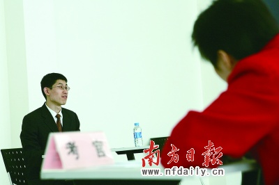本報訊(記者/葉明華)為期兩天的深圳市2008年警察招考面試昨日在警校開始。從筆試、體能測試中突圍而出的1733名考生按綜合、消防、偵查、治安、監(jiān)所管理和交通管理6個職系分別對口進(jìn)行面試(如上圖,魯力攝)。