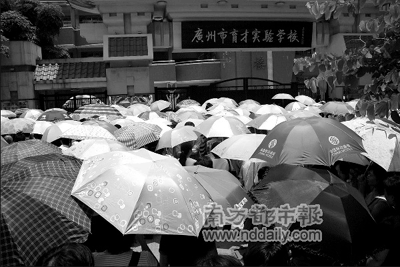 在育才實(shí)驗(yàn)學(xué)校門口,從佛山開車過來的李女士告訴記者,他們一個(gè)早上跑了3個(gè)地方才找到考場,“一開始以為是育才中學(xué),跑到那邊才知道弄錯(cuò)了,后來又跑去了附近的第109中,第三次才找到這里!