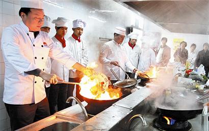中國烹飪大師王輝亞的參與,另三位烹飪大師余明社、孫昌弼、徐家瑩擔(dān)任評(píng)委,使昨日的廚師選拔賽的“含金量”增加了不少。“一般的烹飪大賽,只是面點(diǎn)或熱菜等單項(xiàng)比賽,此次選拔賽要求我們面點(diǎn)和中式菜肴都要會(huì)。”王輝亞說,“這樣‘十項(xiàng)全能’式比賽,比全國烹飪大賽難度大很多。”