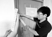 昨天一大早,不少家長(zhǎng)帶著考生前往各考點(diǎn)校 “踩點(diǎn)”,熟悉送考路線。雖然是周末,不知因?yàn)橄掠,還是10萬(wàn)個(gè)考生家庭齊出動(dòng),昨天部分路段出現(xiàn)擁堵。有家長(zhǎng)表示,明天出門還要增加點(diǎn)富裕時(shí)間。在去北京市九中的路上,記者遇到一個(gè)考生和他的父親。父子兩人一邊走一邊標(biāo)記,哪兒能停車,哪段路比較窄容易堵,走哪條路線更近,每段路大概要花多長(zhǎng)時(shí)間,一一注明。這位父親設(shè)計(jì)的送考路線用時(shí)甚至精確到了分鐘。