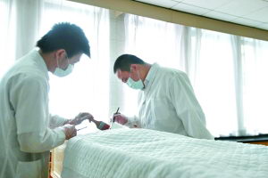 他們說(shuō),遺體整容師不僅是簡(jiǎn)單的化妝,還涉及很多特殊情況的處理。比如尸體防腐涉及一些解剖學(xué)知識(shí),對(duì)殘缺不全的遺體要縫合接肢,就需要人體學(xué)知識(shí)。