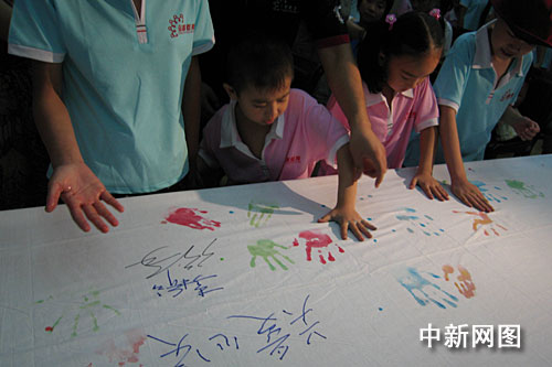 中新網(wǎng)武漢7月13日電 (段娟娟 艾啟平)13日下午,“關(guān)愛心靈、健康成長”——關(guān)懷受艾滋病影響少年兒童第二屆夏令營在武漢舉行開營儀式。開營式上,小營員們舉行了“心連心”結(jié)對互助留簽名手印活動,并得到了贈送的書包。