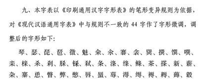 按照這份《通用規(guī)范漢字表》,“琴”“親”“魅”等44個漢字在專家倡導下進行了寫法調整。