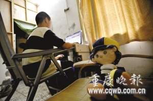 記者看到,程程用電腦在聊QQ,并能熟練地下載免費電話撥打!八螂娔X基本是自己學的!崩紫壬f,因為家庭原因,程程幾乎沒讀書。