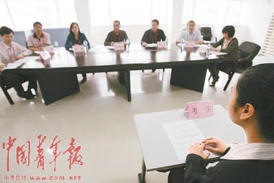 早上8點半,一百多名考官已經(jīng)在考場三樓的階梯教室等待抽簽。此時的一樓,1000多名考生已經(jīng)排隊簽名進場候考。每個人面試的時間都是12分鐘,由于面試成績在總成績中占40%,因此,這12分鐘將在很大程度上決定面試者的未來。